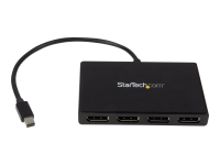 - Information This MST hub lets you connect four monitors to your Mini DisplayPort (mDP) 1.2 equipped Windows tablet, laptop or desktop. The newest generations of computers are more portable than ever, which often means that you're left with fewer video outputs and smaller integrated screens. This MST hub solves both of these problems by letting you connect four additional displays to your computer, which makes multitasking much easier. With the MST hub, you can use Mini DisplayPort video adapters and cable adapters that enable you to connect HDMI, VGA or DVI displays. This ensures that your MST hub will be compatible with virtually any television, monitor or projector. The hub is VESA and DisplayPort certified to support DP 1.2 enabled systems, for seamless integration with your existing video equipment. Using the MST hub, you can extend your desktop onto additional monitors and stream independent content to each display, giving you the freedom to multitask and increase your productivity. You can also mirror the same image onto multiple displays for remote viewing applications such as digital signage. MST technology uses your existing video card to minimize the use of system resources while delivering Ultra HD 4K resolutions. This unprecedented performance makes MST perfect for high-resolution applications such as graphic design, gaming and medical imaging. Note: When using a DisplayPort 1.1 video card the MSTMDP124DP will act as a splitter, automatically mirroring your video source across all displays. Resolution limitations apply. Notes: MST shares 21.6 Gbps across all attached displays. Higher resolutions can restrict the available bandwidth with the remaining ports. Certain graphics adapters have limited MST support and will only output to three displays in total. If more than three monitors are attached, the fourth will be disabled. The Surface Pro 3, Surface Pro 4, and Surface Book only support the use of three displays in total. If this device is used with the Surface Pro 3, and three external monitors, the built-in touch screen on your Surface will be disabled.