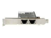 - Information Add two 10 Gigabit Ethernet ports (10Gbps) to a client, server or workstation through one PCI Express slot. Now, you can add 10 GbE networking, while minimizing your deployment costs. This 10Gbase-T network card (NIC) lets you add two RJ45 ports through a single PCI Express slot, to deliver reliable high-speed network connections to your workstations and servers without draining your budget. Compatible with a broad range of operating systems, this versatile dual-port NIC is ideal for many business applications that require upgrades to servers or workstations. It's a cost-effective way to enhance your server or computer capabilities by adding two powerful 10-Gigabit Ethernet ports, with support for advanced features such as VLAN tagging, jumbo frames, and Auto-MDIX. This 2-port PCI Express 10GBase-T network card features the Intel X540 chipset, designed to deliver the power, performance and enhanced capabilities you need for reliable network connections to your server or computer. The X540 chipset provides many advanced features including Intel Virtualization Technology for connectivity and PXE network boot support. Compliant with IEEE 802.3/u/ab standards, the network card delivers a dependable way to upgrade or replace your existing network ports with dual 100/1000/10G compatible RJ45 ports, providing throughput capability of up 10Gbps in each direction (20Gbps total). It connects through a single, four-lane (x8 or higher) PCI Express slot. With a dual-profile design, the PCI Express network card installs easily into a wide range of computer/server chassis, regardless of form factor. The card comes equipped for installation in a full-sized chassis, and includes a low-profile/half-height installation bracket that you can use as needed.