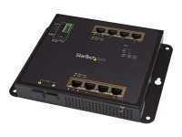 - Information Add up to 10 different GbE devices to your network, using 8 RJ45 (PoE+) and 2 fiber-optic connections, with intelligent Layer 2 management. Easily deploy or scale your network with this Gigabit Ethernet switch, by adding eight copper Gigabit Ethernet ports (PoE+) and two fiber-optic SFP slots. This IP30 industrial network switch provides intelligent Layer 2 management. Its rugged, compact design and wall-mount option with front access make it ideal for demanding applications, even where space is limited. This versatile switch adapts to your network needs by providing two open SFP slots and eight RJ45 Ethernet ports (PoE+), providing both fiber and copper connections in a single network device. The MSA compliant SFP ports are compatible with 100/1000Mbps networks. The network switch enables you to connect up to eight RJ45 PoE+ devices, so different users can share files and devices, such as printers and scanners, over a LAN connection. Dual power input (terminal block and DC plug) provides flexible power options. The switch gives you the freedom to place your equipment in locations where power outlets are not available, with support for Power over Ethernet Plus. The network switch provides abundant PoE power, with up to 30 watts for each PoE port (200W budget). Wall-mount the compact Gigabit switch to provide convenient front access to ports and indicators. It's ideal for a wide range of applications, including tight installation areas with significant electromagnetic interference, such as control cabinets and panels. The network switch is also DIN-rail mountable. The switch delivers efficient and stable performance, with Layer 2 management capabilities. This lets you control packet traffic on a busy network, and customize your settings to achieve optimal network performance, offering improved efficiency and reliability. This rugged network switch features an IP30-rated metal housing and extended temperature range of -40°C to 75°C, which makes it ideal for a wide range of operating conditions. The sturdy metal enclosure offers durability, even in harsh industrial environments. With support for 10/100/1000Mbps transfer speeds, this managed switch supports full/half-duplex auto-negotiation, jumbo frames and auto MDI/MDIX operation. This lets you connect your network devices quickly and easily, with little to no configuration required.